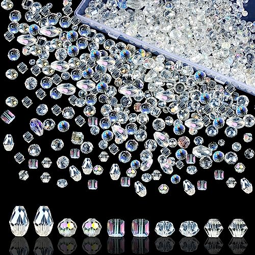 XIEJ 1 000 stycken kristallglaspärlor, 4/6/8 mm pärlor för att trä upp, med behållarlåda, glaspärlor med hål för pyssel, smyckestillverkning, gör-det-själv-halsband, armband, örhängen (AB-färg)