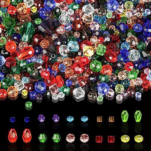 1 000 stycken kristallglaspärlor, 4/6/8 mm pärlor för att trä upp, med behållarlåda, glaspärlor med hål för pyssel, smyckestillverkning, gör-det-själv-halsband, armband, örhängen (12 färger)