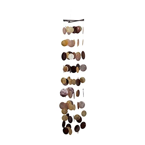 Relaxdays Capiz vindspel med snäckskal, pärlor, maritimt trä trädgård mobil, fönster, balkong, 117 cm, brun-rosa