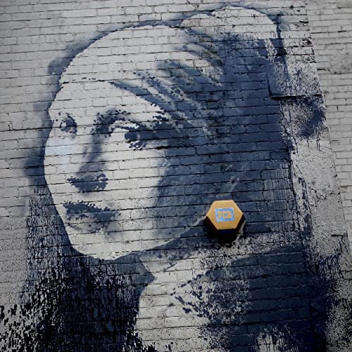 Homemania Tabell Inspiration av författarna Banksy flickan med pärlörhänge-konst hem-tryck, digitalt, ram-flerfärgad, trä, bomull 60 X 60 X 3