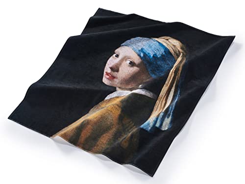 Musearta Unisex strandhandduk med motiv flicka med ett pärlörhänge av konstnären Johannes Vermeer av bomull i storlek 144 x 180 cm, BT-JV-GE-V424283