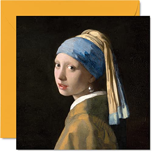 Klassiska konstkort för kvinnor och män – Johannes Vermeers flicka med pärlörhänge – känt födelsedagskort för mor, far, mormor, farfar, 145 mm x 145 mm, traditionell klassisk