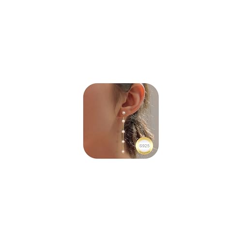 Dochais s925 långa pärlor örhängen 14k förgyllda pärlörhängen hängande pärlörhängen guld/silver örhängen med pärla vattentät allergivänliga modesmycken örhängen för kvinnor flickor brud gåva, Silver,