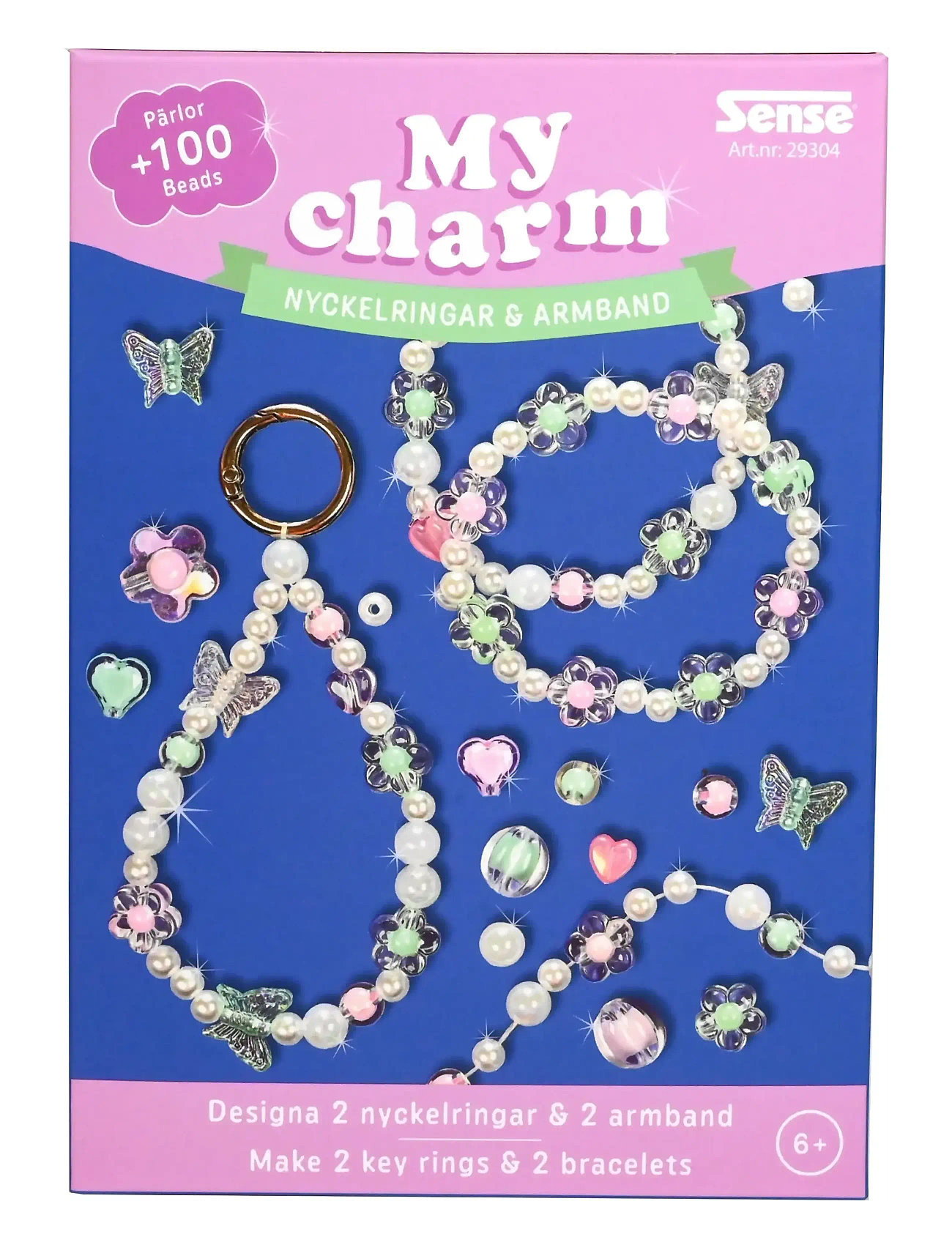 Sense Pärlset Nyckelring & Armband Grön/Rosa Multi/patterned