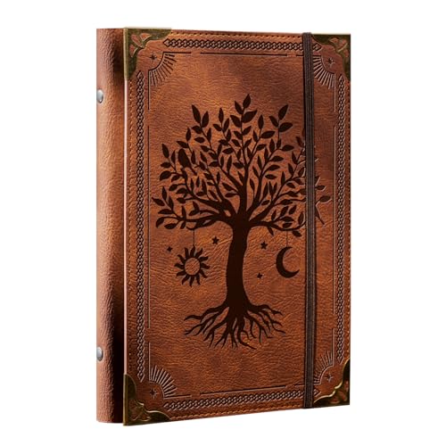 Ovesmusl PU-läder A5 pärm 6 ringar påfyllningsbar journal omslag inget påfyllningspapper A5 planeringspärm lös bladpärm anteckningsbok 14,5 cm x 21,1 cm, brunt träd
