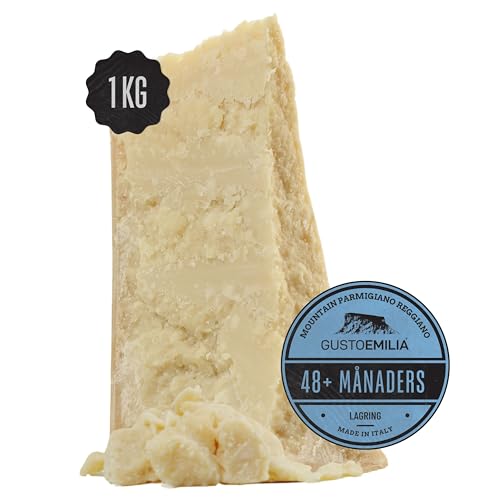 GUSTOEMILIA Mountain Parmigiano Reggiano Ost 48 Månader Lagrad - Idealisk för Pasta, Bröd, Sallader, Snacks och Frukter - Italiensk Lagrad Parmesanost 2,2 lb (1 kg)