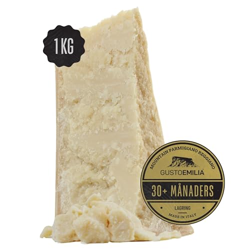 GUSTOEMILIA Mountain Parmigiano Reggiano Ost 30 Månader Lagrad - Idealisk för Pasta, Bröd, Sallader, Snacks och Frukter - Italiensk Lagrad Parmesanost 2,2 lb (1 kg)