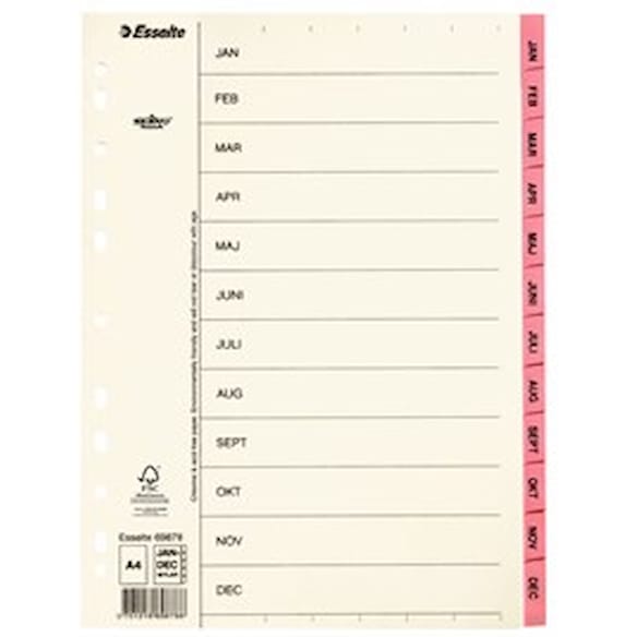 Pärmregister ESSELTE A4 Jan-Dec Rosa, flikförstärkt 10st