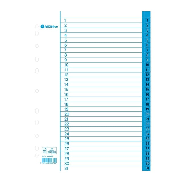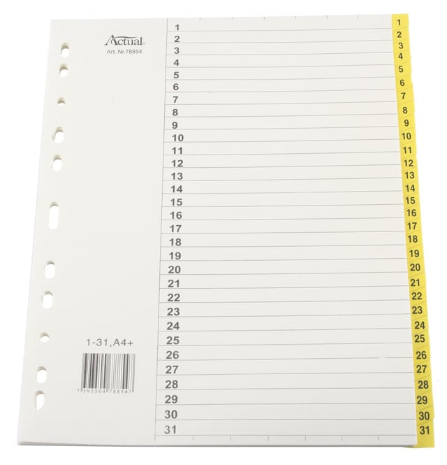 Pärmregister Plastförstärkta Flikar 1-31 A4+