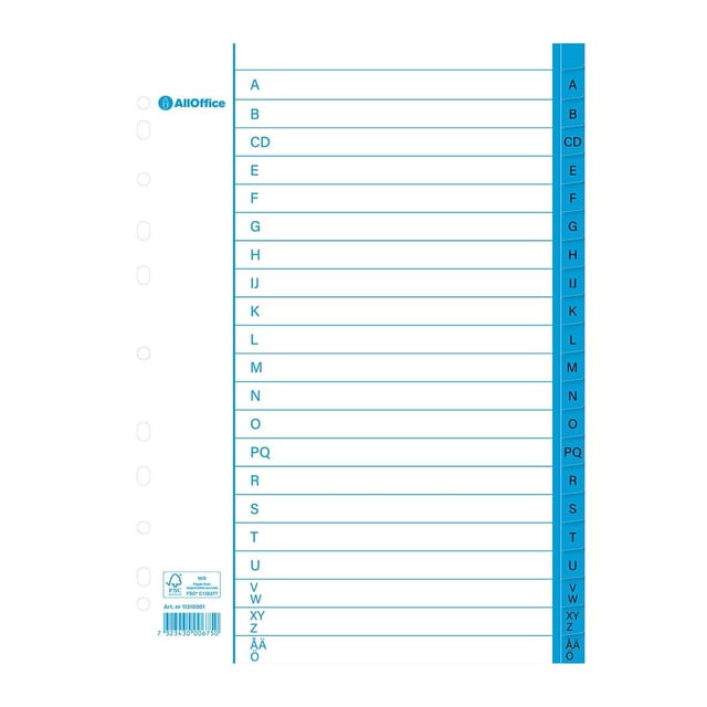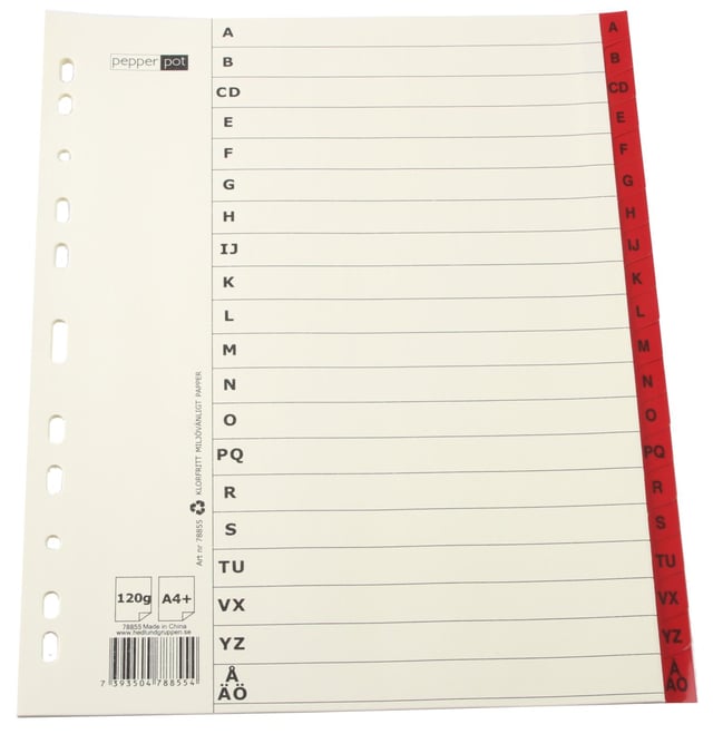 Pärmregister Plastförstärkta Flikar A-Ö A4+
