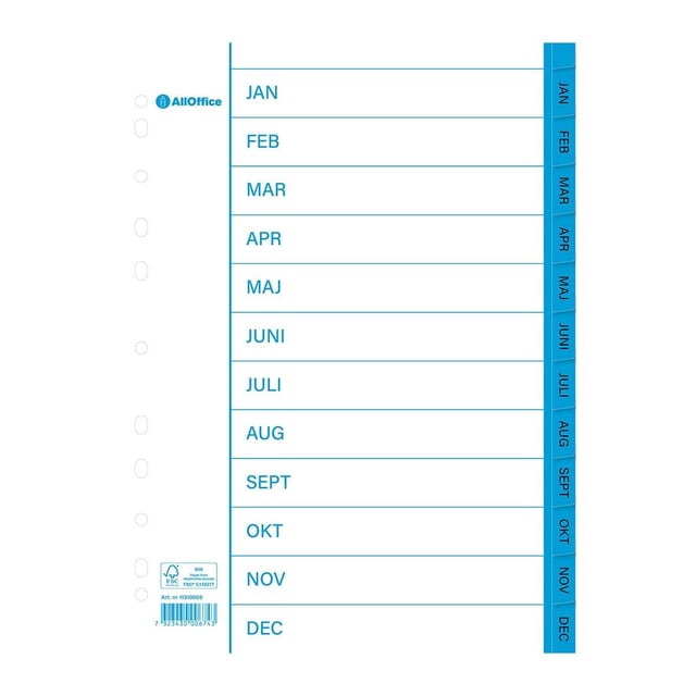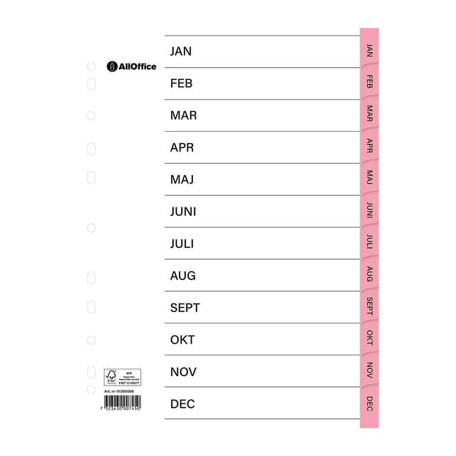 Pärmregister AllOffice Plastförstärkta Flikar Jan-Dec A4