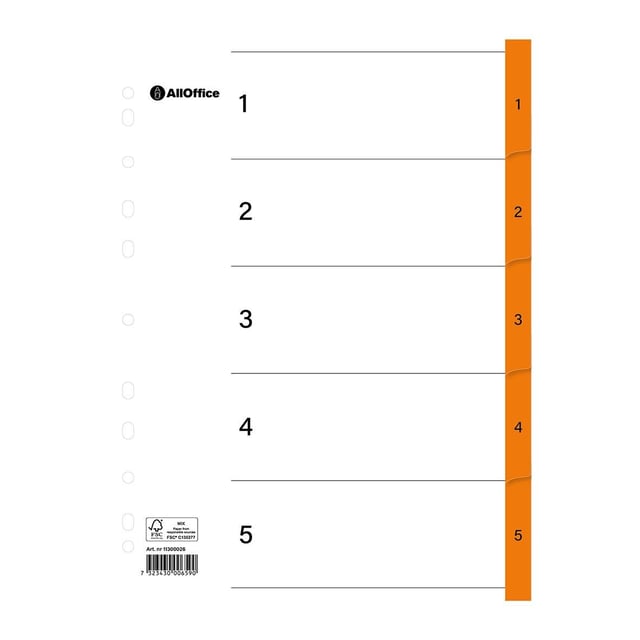 Pärmregister AllOffice Plastförstärkta Flikar 1-5 A4