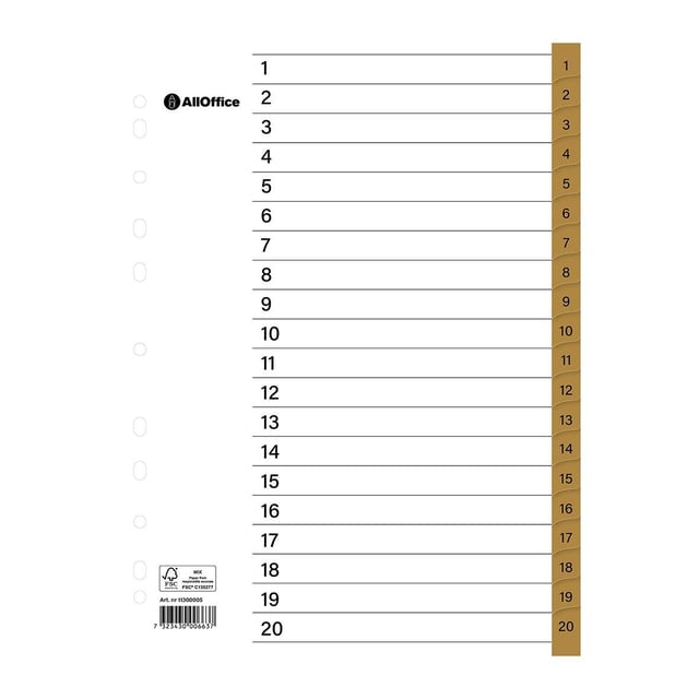 Pärmregister AllOffice Plastförstärkta Flikar 1-20 A4