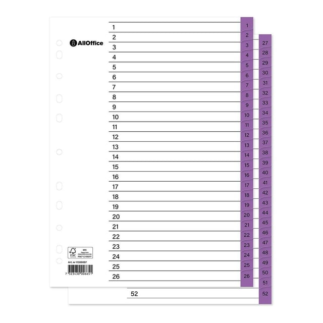 Pärmregister AllOffice Plastförstärkta Flikar 1-52 A4