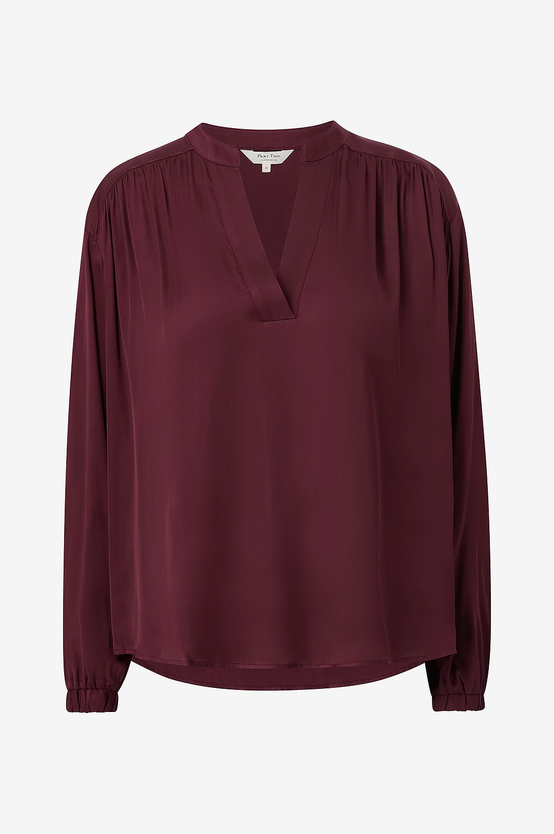 Part Two Dam blus V-notch halsband med knytband ballongärmar, Whitecap grå, 36