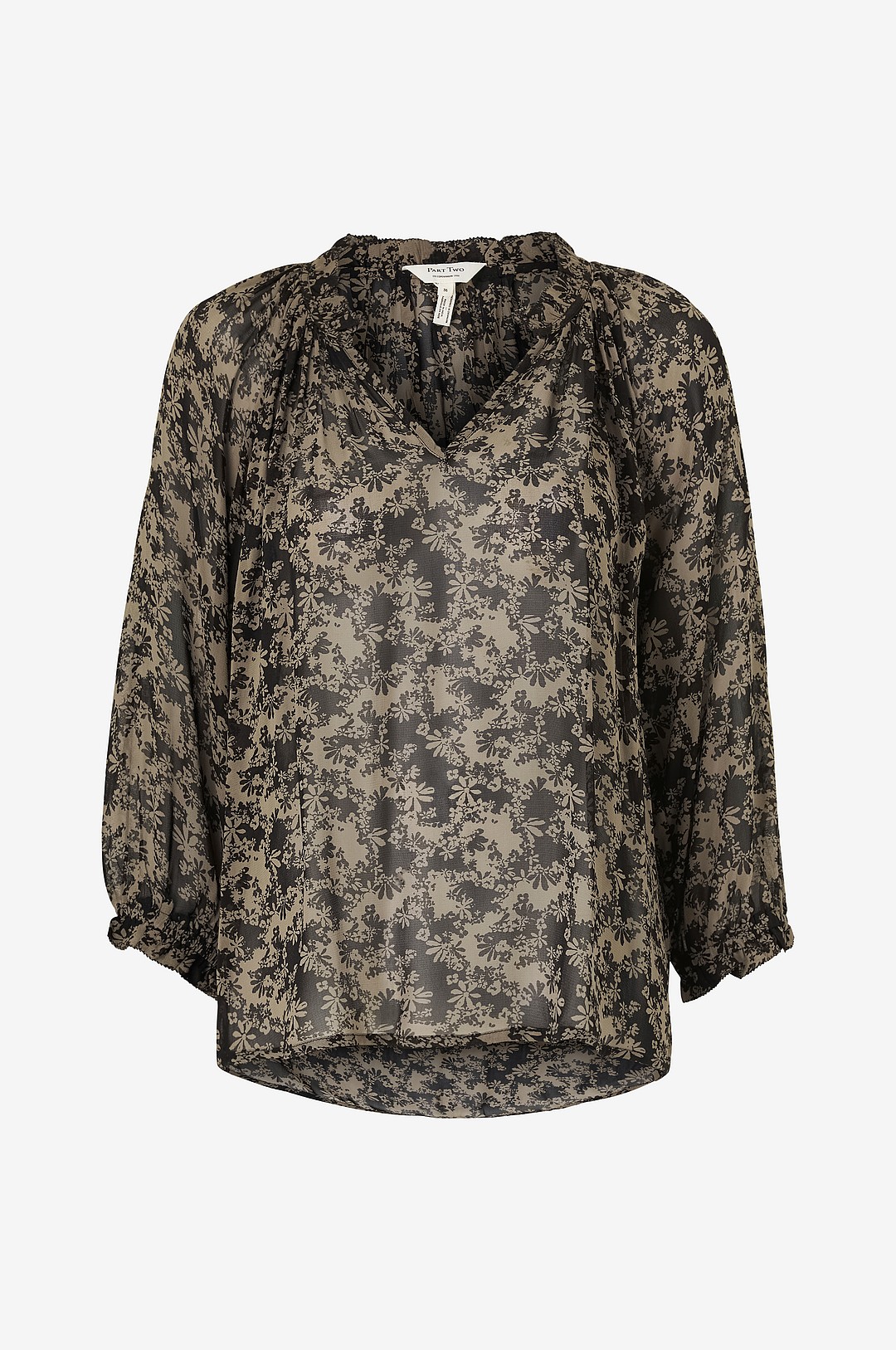Part Two, Toppar , Dam, M, Svart V-ringad blus med fint tryck