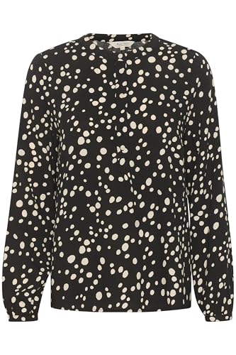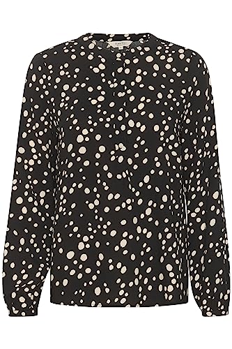 Part Two Dam blus tryckt band krage rund hals avslappnad passform långa ärmar, Svart prickigt tryck, 32