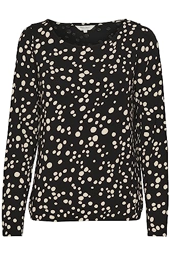 Part Two Kvinnors blus med lång avsmalnande ärmar avslappnad passform båthalslängd, Svart prickigt tryck, L