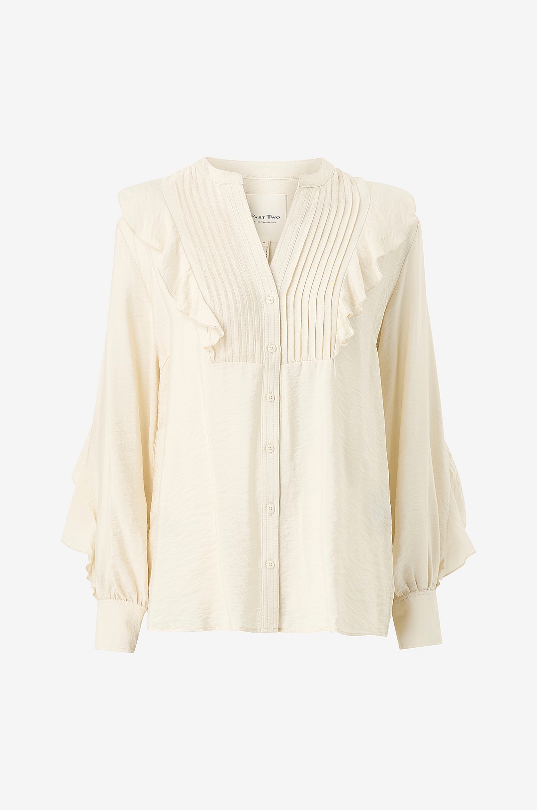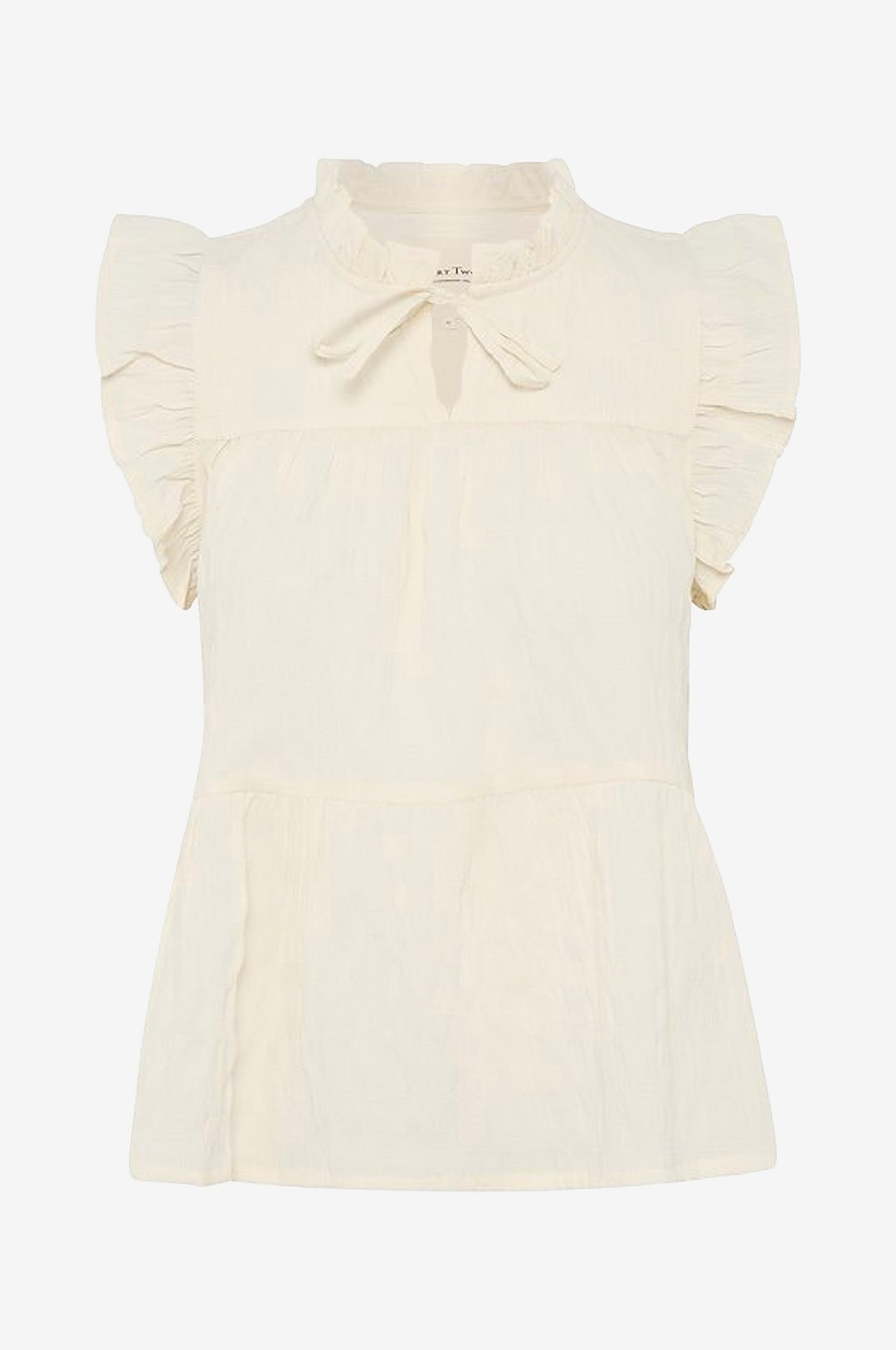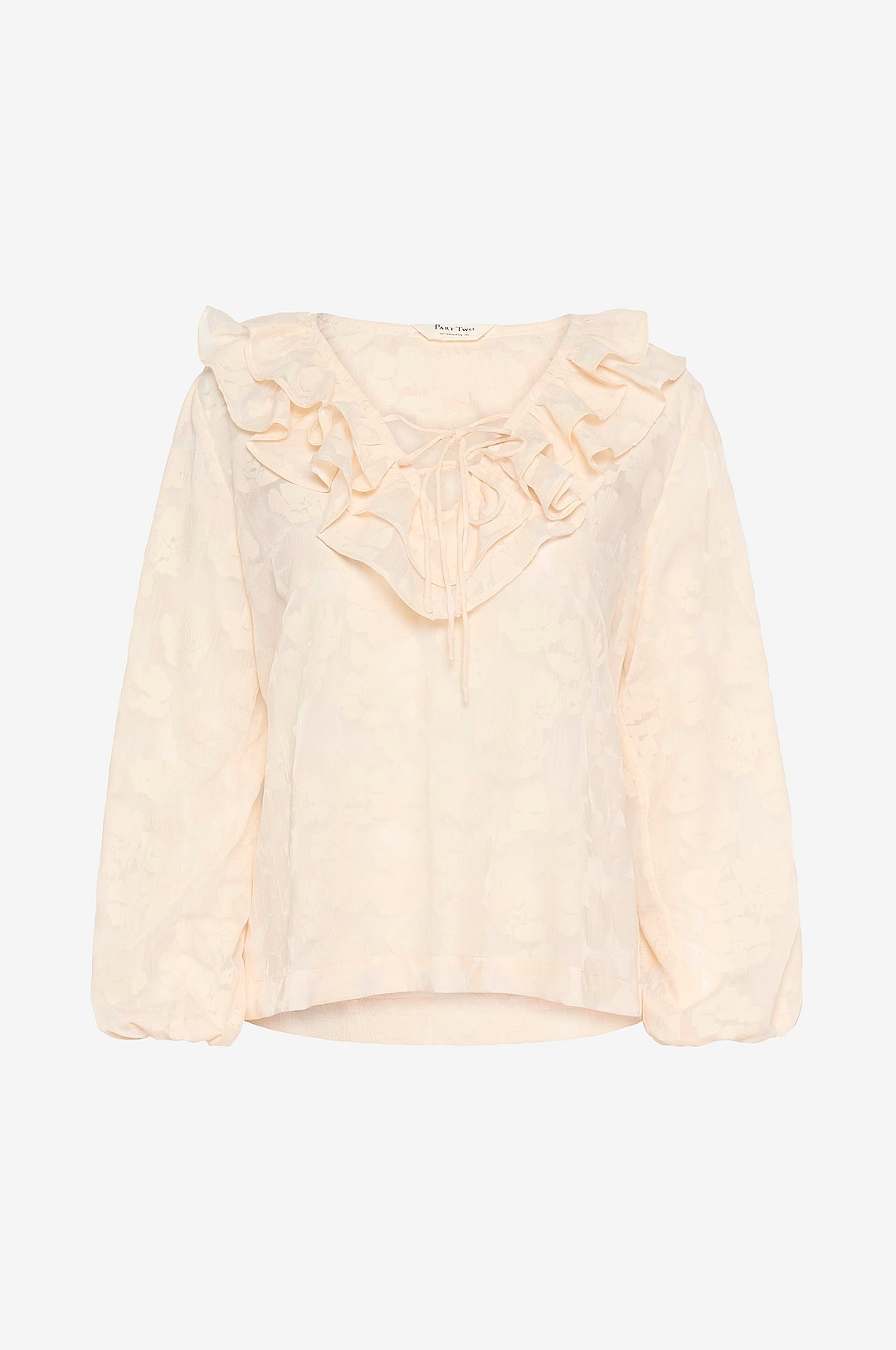 Part Two Dam blus V-notch halsband med knytband ballongärmar, Whitecap grå, 34
