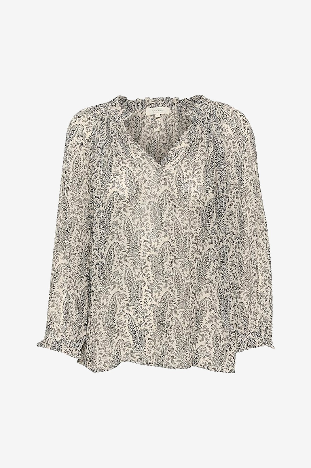 Part Two Kvinnors blus V-notch halsband 3/4 ärmar avslappnad passform tryckt tyg, Svart Paisley-tryck, 32