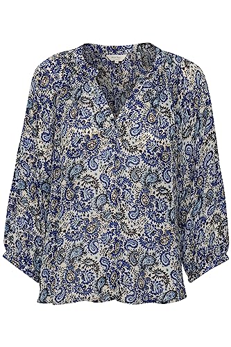 Part Two Kvinnors blus V-notch halsband 3/4 ärmar avslappnad passform tryckt tyg, Blått Paisley-tryck, 42