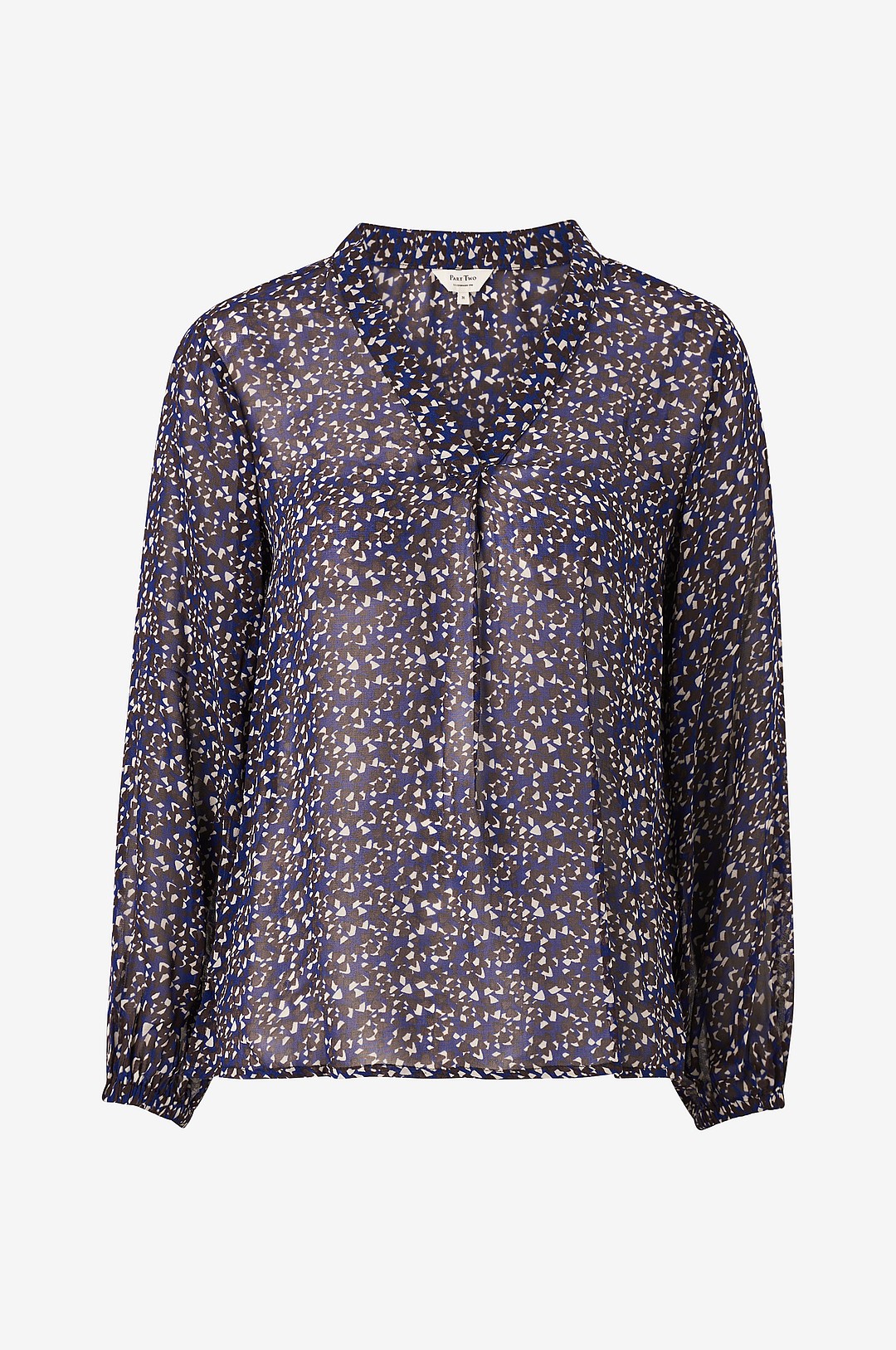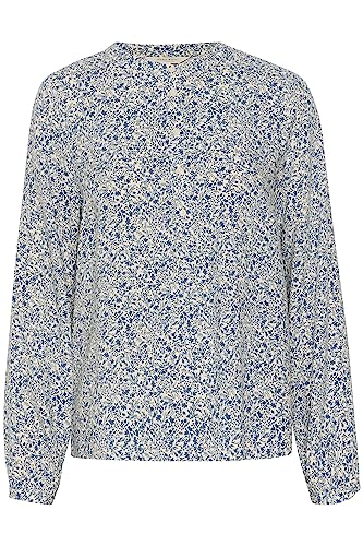 Part Two Dam blus tryckt band krage rund hals avslappnad passform långa ärmar, Blå opal minitryck, 40