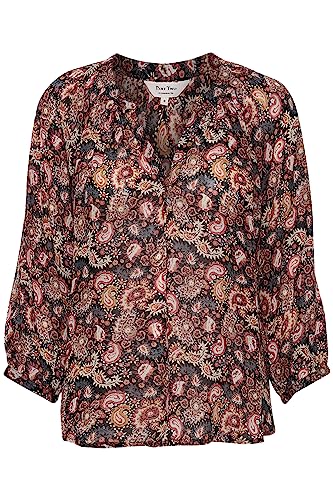 Part Two Kvinnors blus V-notch halsband 3/4 ärmar avslappnad passform tryckt tyg, Svart Paisley-tryck, 38