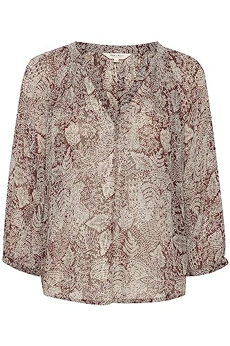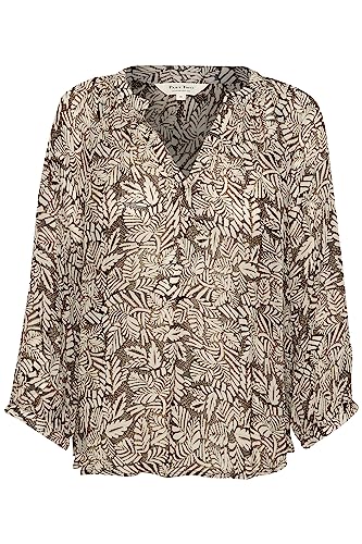 Part Two Kvinnors blus V-notch halsband 3/4 ärmar avslappnad passform tryckt tyg, Svart bladtryck, 32