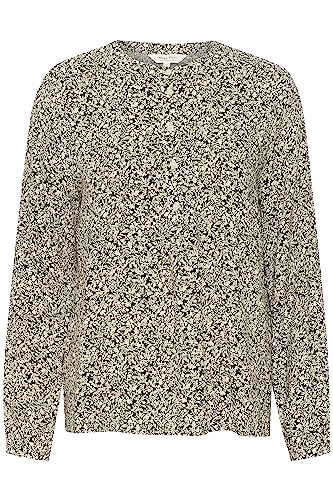 Part Two Dam blus tryckt band krage rund hals avslappnad passform långa ärmar, Svart minitryck, 38