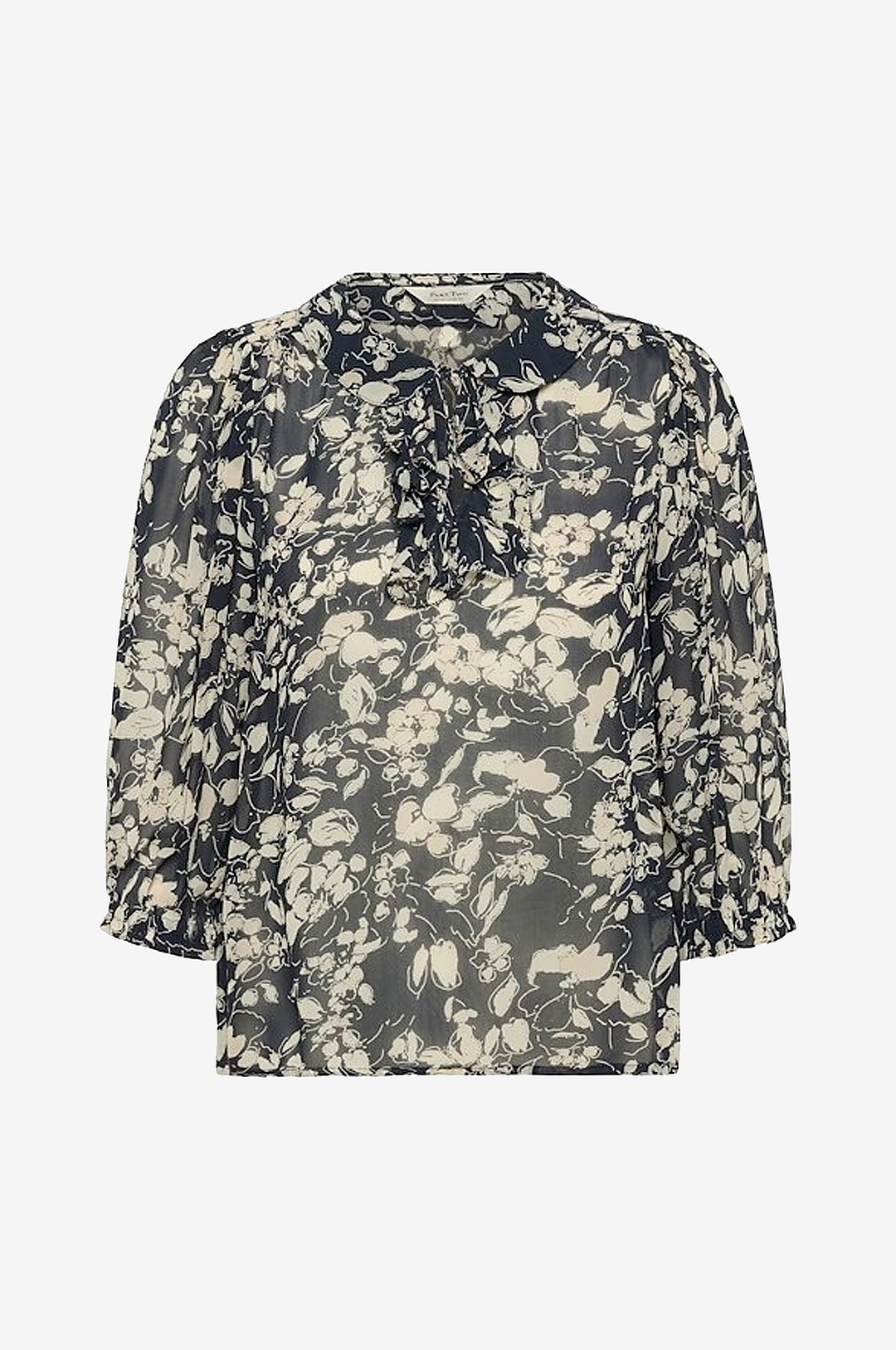 Part Two, Blusar & Skjortor , Dam, L, Blus med svart stygn och lövmönster