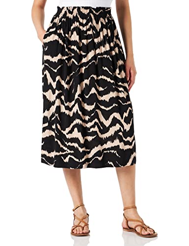 Part Two Dam kjol midi längd A-linje passform komfort midja tryckt tyg, Svart texturtryck, 42