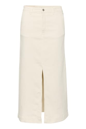 Part Two Kvinnors denim kjol högvadderad rak silhuett midi längd, Äggnog, 36