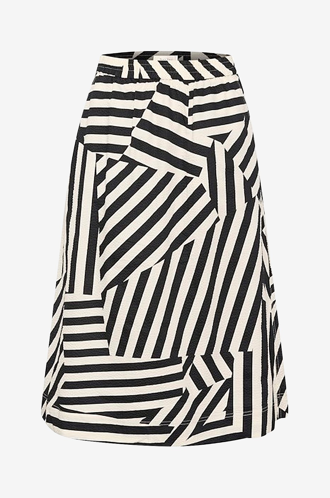 Part Two Dam kjol midi längd A-linje passform komfort midja tryckt tyg, Svart texturtryck, 32