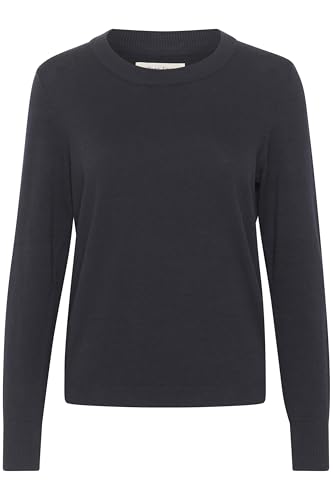 Part Two Kvinnors tröja rund hals ränder vanlig passform långa ärmar tight stickad, Mörk marinrand, L