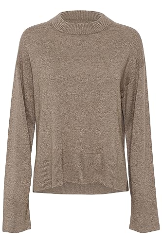 Part Two Kvinnors tröja Crew Neck avslappnad passform beskurna ärmar breda axelremmar, Mink Melange, L