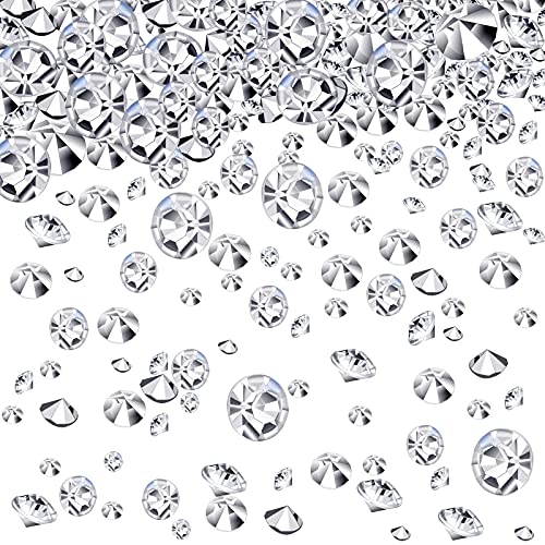 Hicarer 4000 Pieces Diamonds Crystals Acrylic Gems Wedding Table Scattering Gemstones Christmas Party Decorations Bridal Shower Masquerade Vase Fillers(Silver,3 mm, 6 mm and 10 mm)