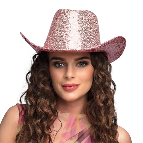 W WIDMANN MILANO Party Fashion 2489P Cowboyhatt med strassband, rosa, cowgirl, vilda västern, hatt, huvudbonad, tillbehör, karneval, temafest