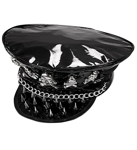 W WIDMANN MILANO Party Fashion 75720 – Rocker hatt, med dödskallar, nitar och kedja, svart, tillverkad av vinyl, hatt, huvudbonad, tillbehör, karneval, temafest