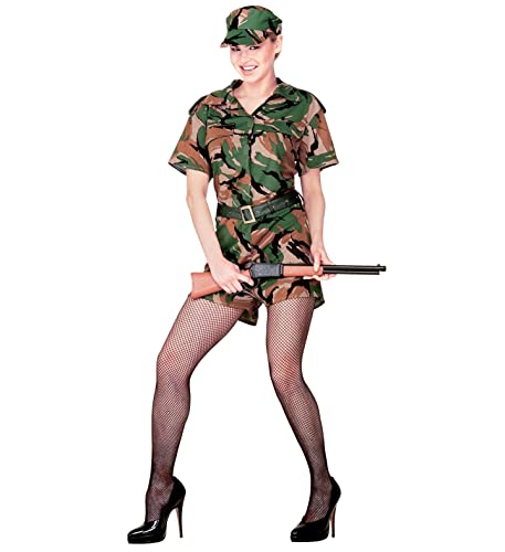 W WIDMANN MILANO Party Fashion – Kostym soldatin, klänning, hatt och bälte, kamouflage, karneval, temafest
