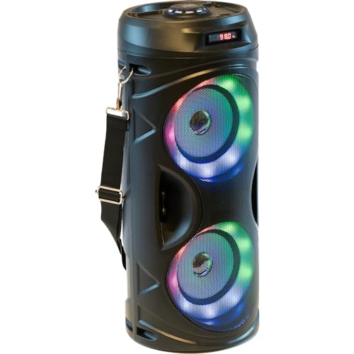 Party Light & Sound - TEEN-VIBE - Batteridriven högtalare med upplysta baselement - Bluetooth, USB, MicroSD, Jack 6,35mm, TWS - Bärrem - Svart