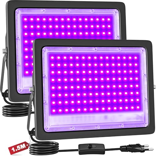 MEEKBOS UV Svartljus LED 300W, 385–400nm, IP65 Vattentät UV Strålkastare för Glow Party,Black Light Party, Neonfest, Fluorescerande Färg, Halloween (2-Pack)