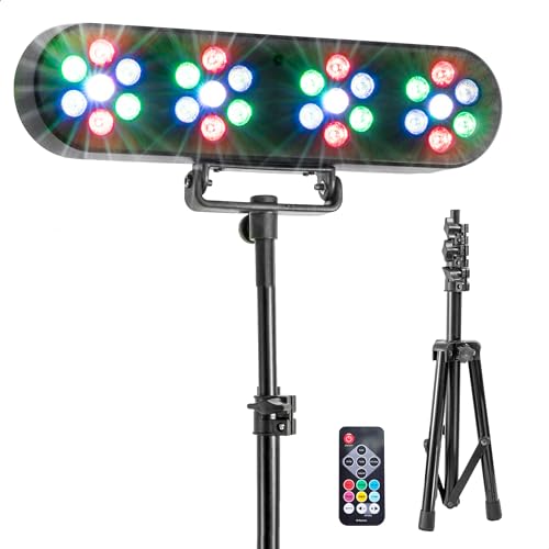 Party Light & Sound - FUNLED - Ljusshow med 4 effekter på teleskopstativ - 4 PAR med 7 LED på 1 W vardera - Fjärrkontroll - Strobe-effekt - Stativ med justerbar höjd ingår
