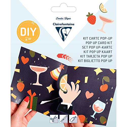 Clairefontaine 20023C - Kit med 1 vikta kort 13,5 x 13,5 cm + 1 gummerat kuvert 14 x 14 cm + element att klippa ut + 1 anteckning - Ready Party-tema - Pop-Up-kort - 3D-kort - DIY - kreativ fritid