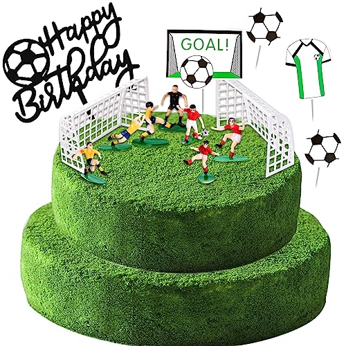 14 Stycken Fotboll Tårtdekoration, Party Cupcake Toppers, Tema Dekoration för Pojke, Happy Birthday