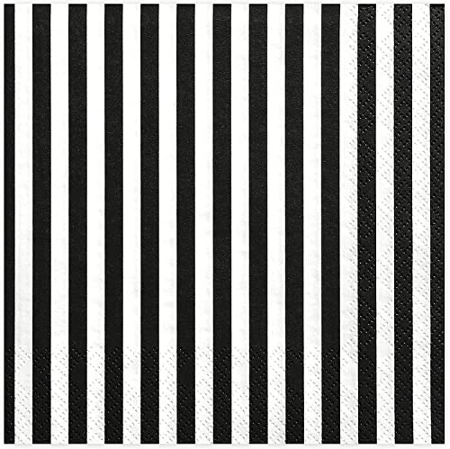 20 Vita Och Svarta Randiga Pappersservetter, Svart Vit Randig Dubbel Slöjduk för Födelsedag Tema Party - 33x33 cm