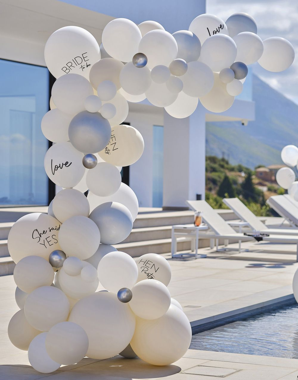 Vit, Nude och Silverfärgad Ballongbågset med Möhippa/Hen Party-tema - Hen Weekend