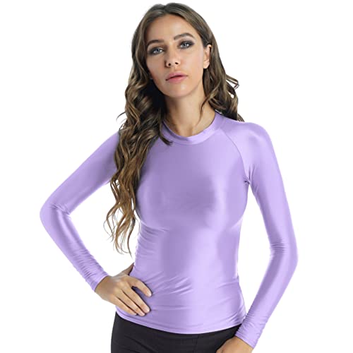 inhzoy dam metalliska toppar långärmad skjorta glänsande slät t-shirt topp blus rave party klubbkläder sportkläder danskläder, Lavendel, M