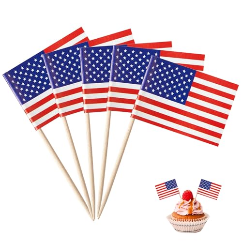 Catelves 100 stycken amerikanska tandpetare, amerikanska flaggor USA dekoration party spett fingermat, amerikansk cocktailpinne, Olympia flagga USA cupcake-toppar, cocktailtillbehör