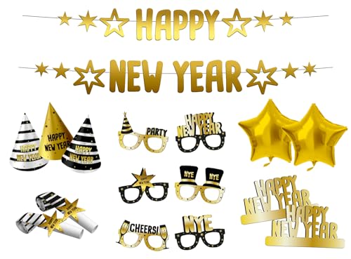 Folat 63764 Partybox BlackGold HNY Silver dekoration, nyårsfest, nyår nyårsafton dekoration, gott nytt år, Gott Nytt år, flerfärgad