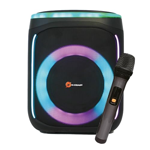 N-Gear Flash Banger 606 - Bärbar Bluetooth-högtalare med belysning - 300 watt partybox med trådlös mikrofon och inbyggt batteri - 6 timmars speltid